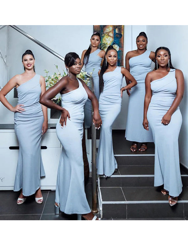Simple One Shoulder Mermaid Satin Bridesmaid Dresses Online, BG322