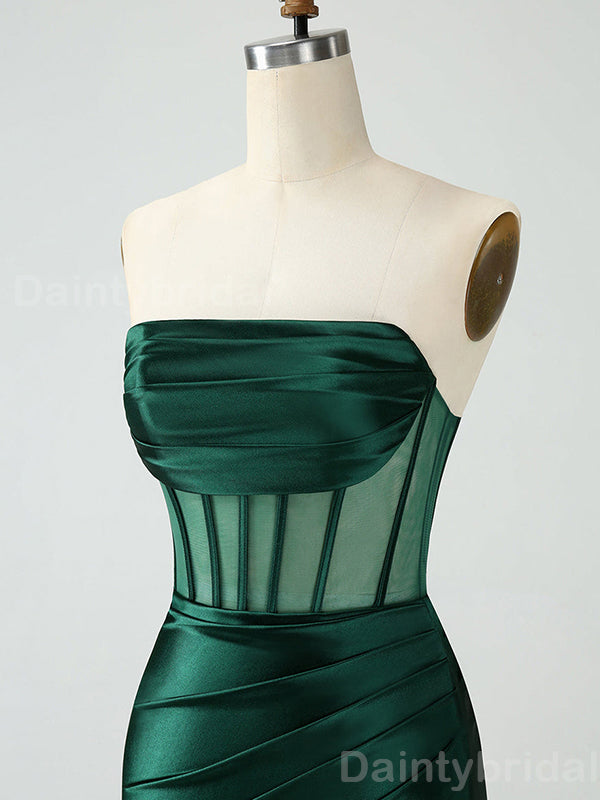 Elegant Straight Neck Sleeveless Dark Green Mermaid Satin Short Homecoming Dresses Online, HD0712